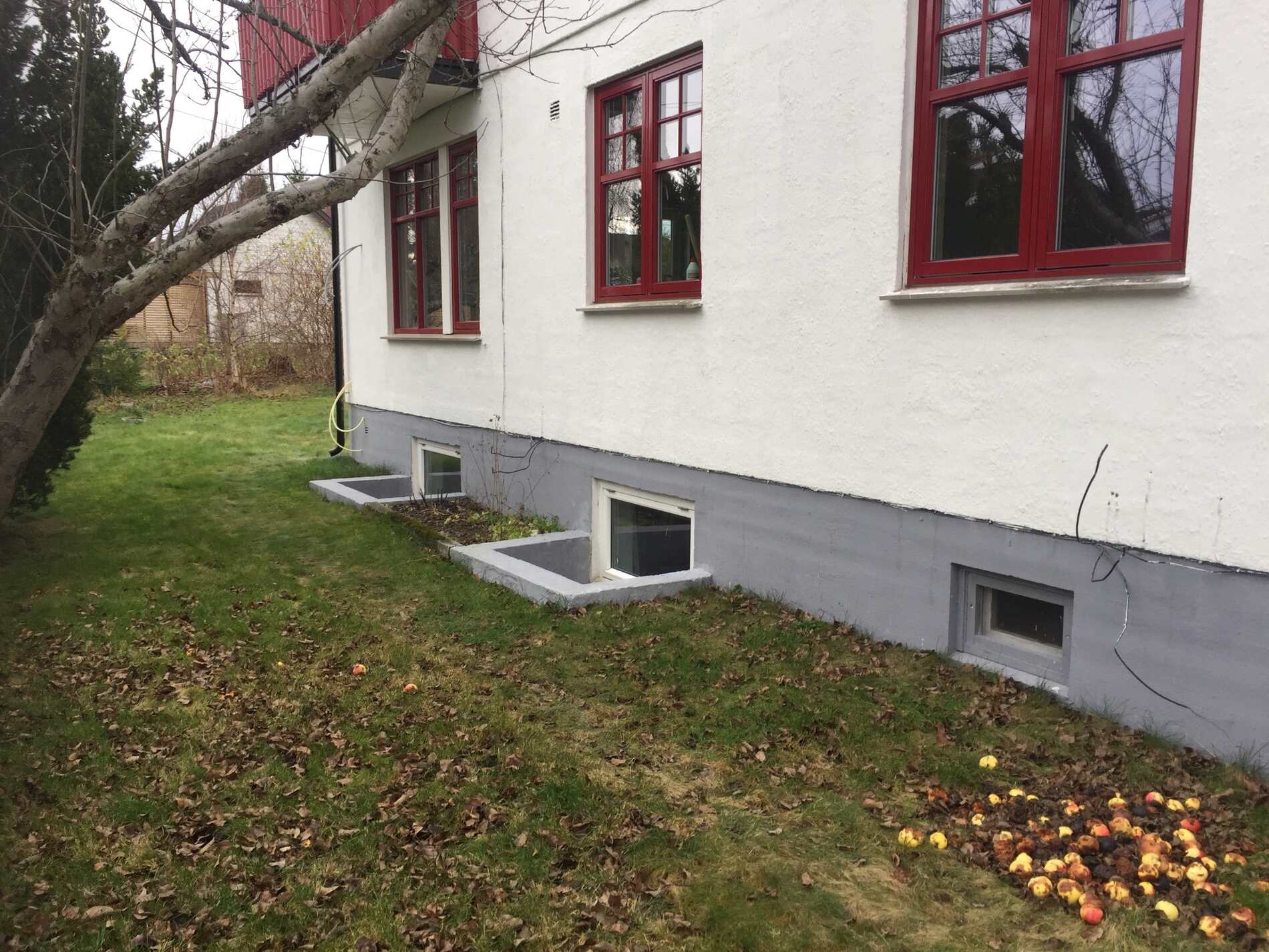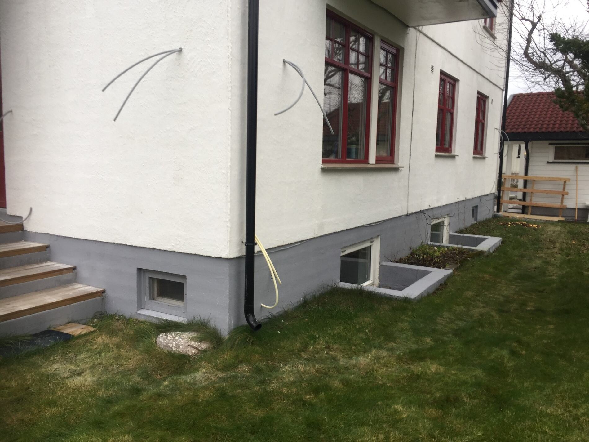 Det monteres prefabrikkerte lyskasser foran kjellervinduer