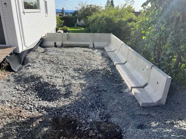 - Grunnarbeid for uteplasser og mur