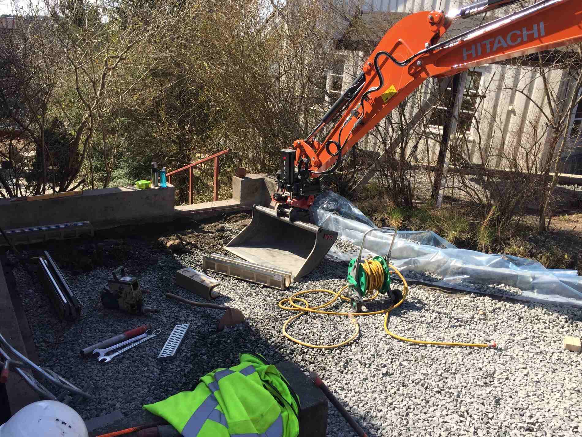 Vi tilbyr tjenester som grunnarbeid, trapper, drenering, legging av plen, kjerneboring, trefelling og mer i Follo, Oslo og omegn
