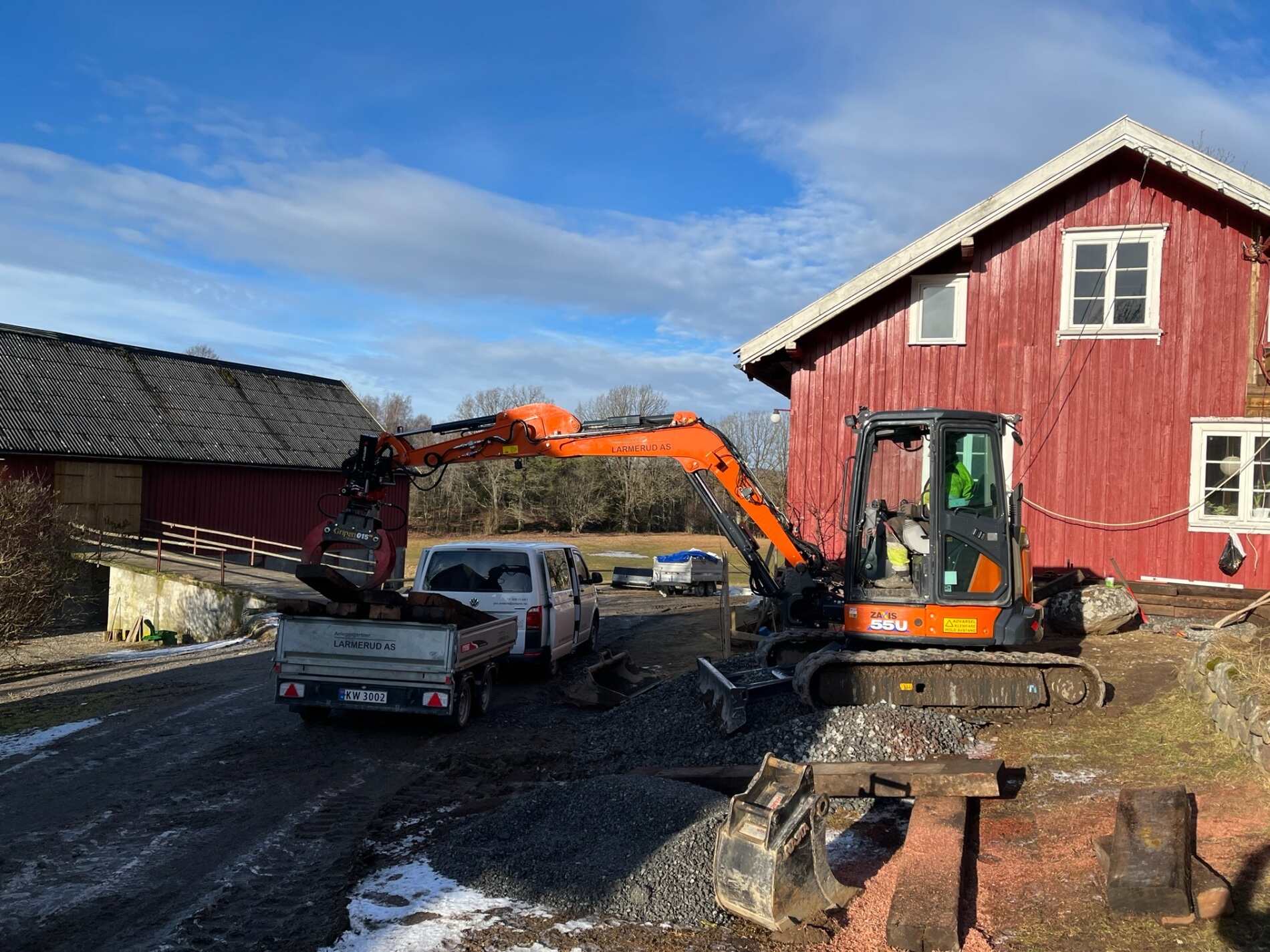 Grunnarbeid for boliger, grøfter for vann/avløp, opparbeidelse av fundament for steinlegging/asfalt, planering av tomter. Vi har kompetansen og utstyret som trengs!
